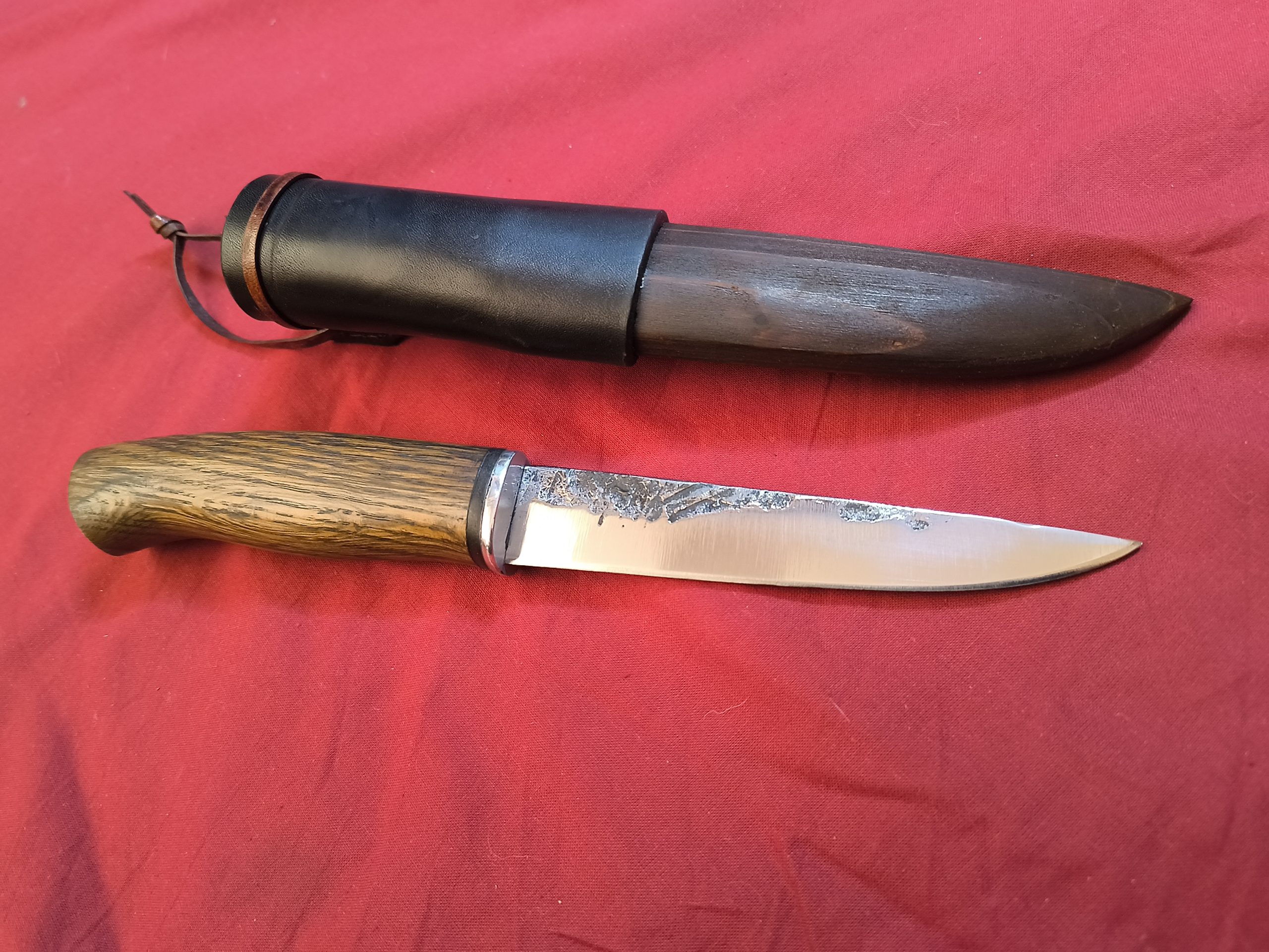 Cuchillo Pukko inspirado en los tradicionales cuchillos finlandeses. Un modelo multitareas para la vida al aire libre, pensado para la aventura, el campo y el bushcraft. Forjado a mano en acero AISI 9260 con hoja en brut de forge, encabado en madera de fresno, con separadores de cuero y virola de aluminio.